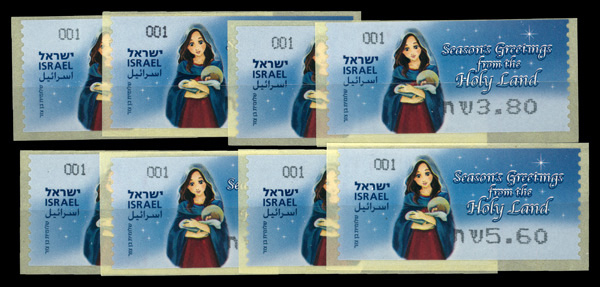5987 nh 2014, christmas seasons greetings from h image2014, Christmas Season's Greetings from the Holy Land machine #1, complete set of singles, o.g., never hinged, Fine to Very Fine.