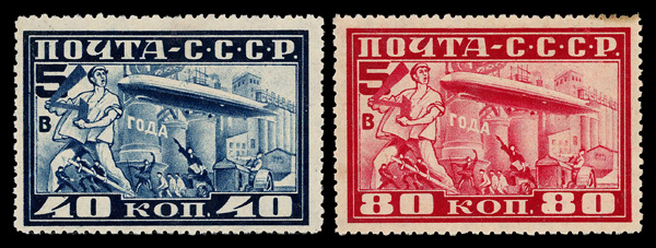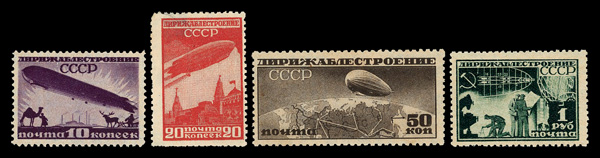 6108 og C12a-C13a imageAirmail, 1930, Zeppelin and Five Year Plan complete, perf 10½ (Scott C12a-C13a), complete set of singles, o.g., hinge remnant, Very Fine.