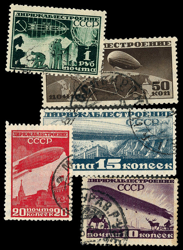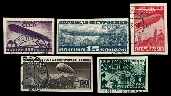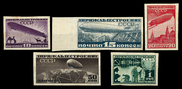 6112 O C15-C19 imageAirmail, 1931, Dirigible Construction complete, imperf (Scott C15-C19), complete set of singles, Very Fine.