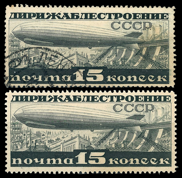 6115 og C22a image1931, Airship over Lenin Mausoleum (Scott C22a), singles, o.g., hinge remnant, Very Fine.