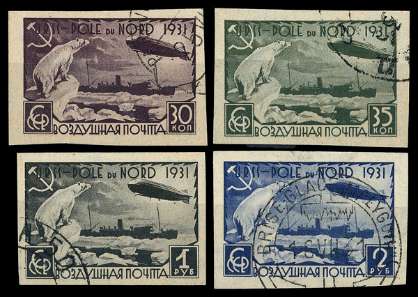 6119 O C26-C29 imageAirmail, 1931, Polar Flight Zeppelins complete, imperf (Scott C26-C29), complete set of singles, Very Fine to Extremely Fine.