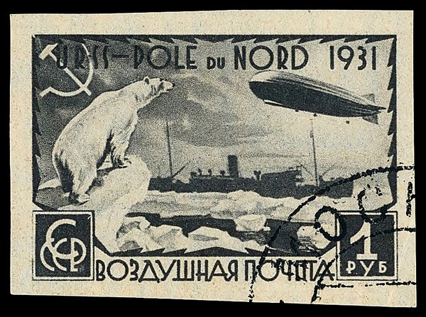 6120 O C28 imageAirmail, 1931, 1r Polar Flight Zeppelin, imperf (Scott C28), single, Very Fine to Extremely Fine.
