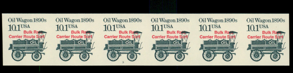 5229 nh 2130b image1985, 10.1¢ Oil Wagon, horizontal coil, imperf. pair, untagged (Bureau precancel in red) (Scott 2130b), plate #3, o.g., never hinged, Extremely Fine.