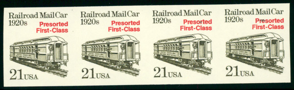 5231 nh 2265a image1988, Transportation Issue, 21¢ Railroad Mail Car, imperf. pair (Scott 2265a), o.g., never hinged, Extremely Fine.