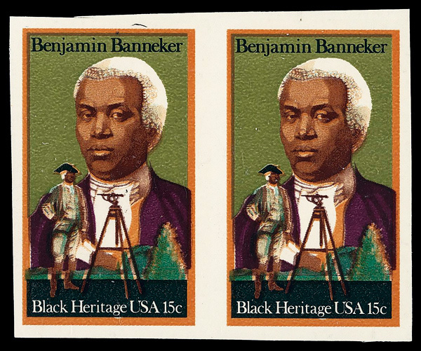 5224 nh 1804 image1980, 15¢ Benjamin Banneker (Scott 1804), pair, imperf printer's waste, o.g., never hinged, Very Fine, with 2025 P.F. certificate. (Image) (Image2) (All Images)