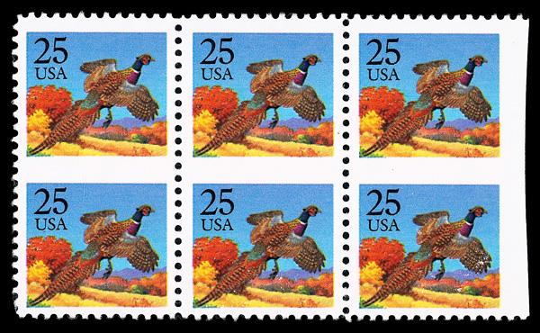 5232 nhbl 2283d image1988, 25¢ Pheasant, vertical imperf. between (Scott 2283d), o.g., never hinged, Very Fine, with 2025 P.F. certificate. (Image) (Image2) (All Images)