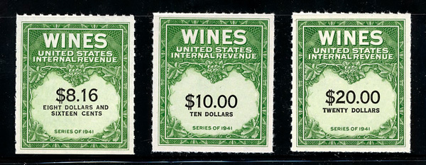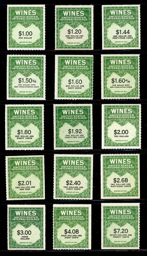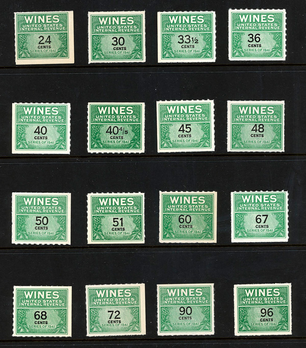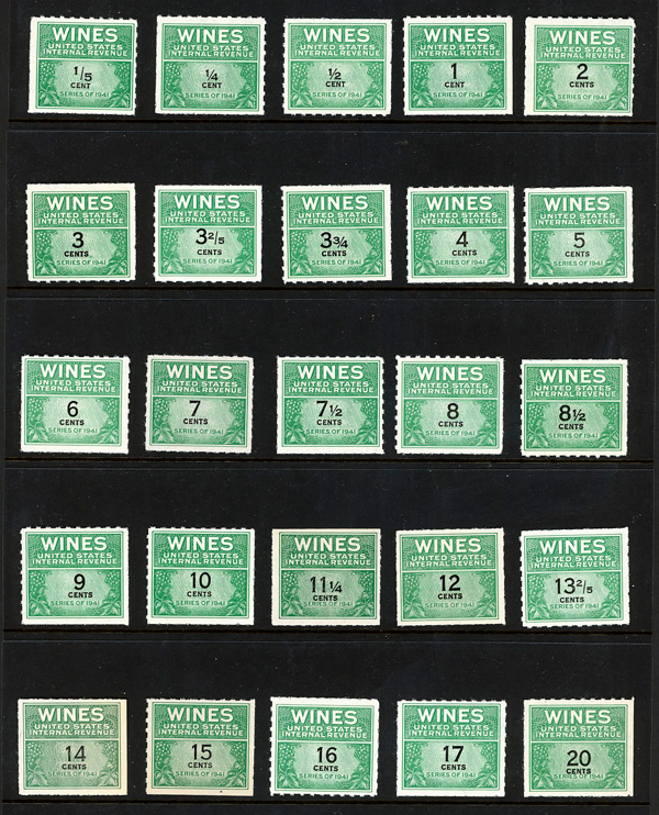 5319 ng RE108//RE203 imageWine Stamps, 1942-54, 1/5¢-$20.00 (Scott RE108//RE203), selection of 59 different, without gum as issued, Fine to Very Fine.
