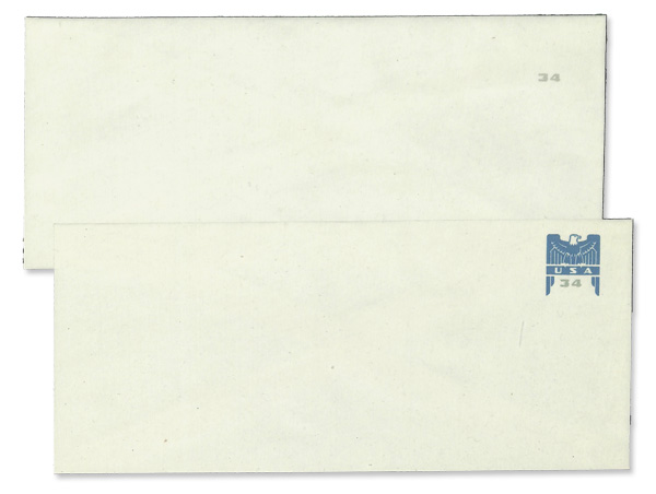 5311 og U646a imageEnvelope, 2001, 34¢ Eagle, blue gray omitted (Scott U646a), entire, with a normal example, o.g., never hinged, Extremely Fine.