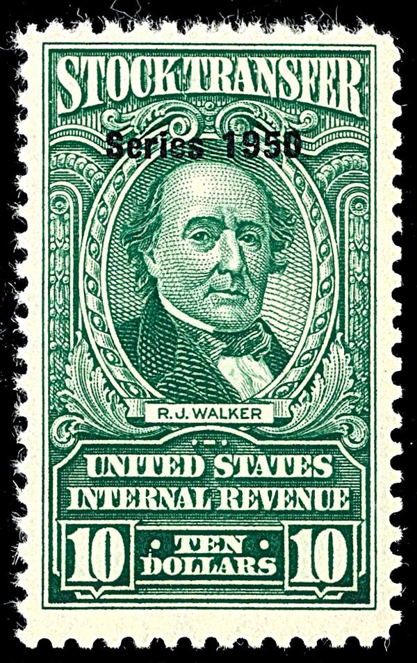 5316 ng RD328 imageStock Transfer, 1950, $10 Walker (Scott RD328), unused without gum, Very Fine.