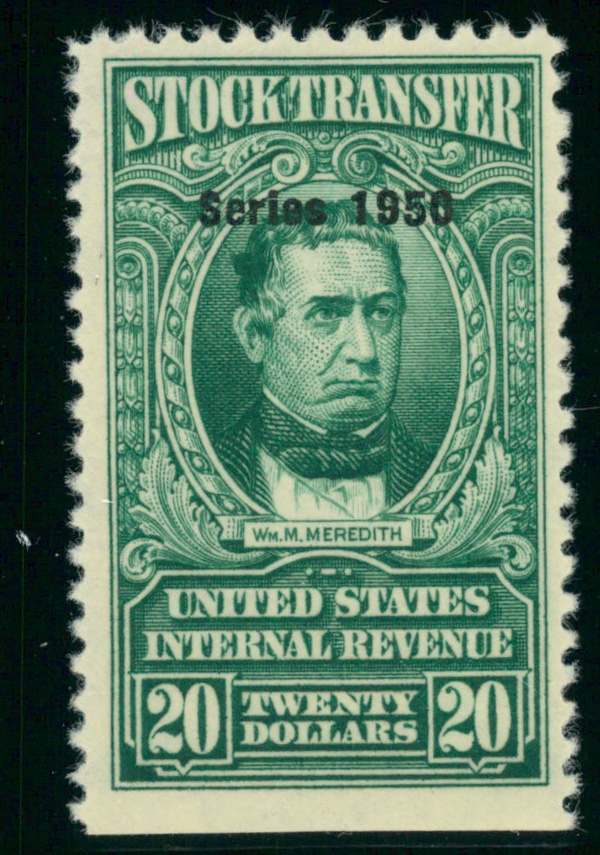 5317 ng RD329 imageStock Transfer, 1950, $20 Meredith (Scott RD329), unused without gum; straight edge at bottom, Very Fine.