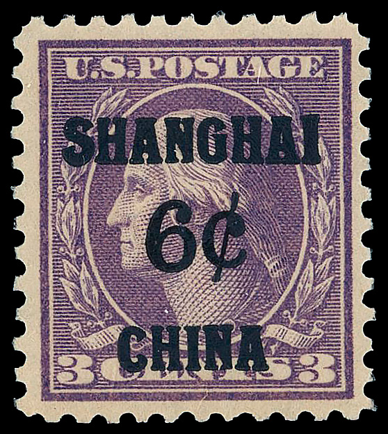 5281 nh K3 imageOffices in China, 1919, 6¢ on 3¢ violet (Scott K3), o.g., never hinged, Very Fine.
