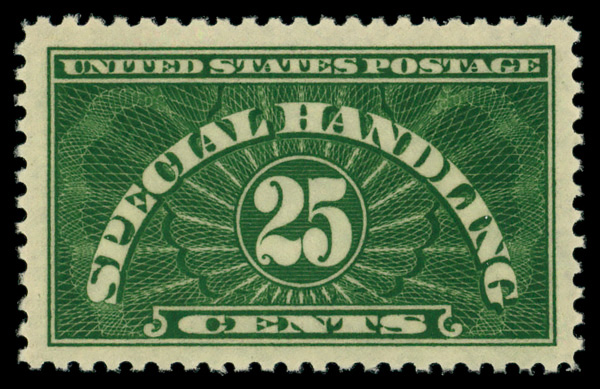 5295 nh QE4a imageSpecial Handling, 1928, 25¢ yellow green (Scott QE4a), o.g., never hinged, Extremely Fine.