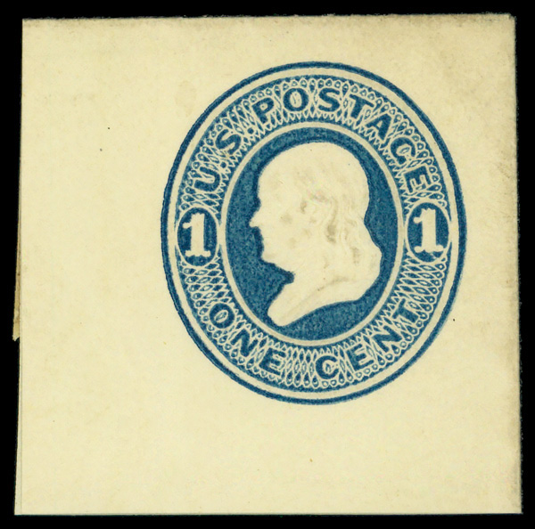5306 og U75 imageEnvelope, 1870, Reay Issue, 1¢ blue on amber (Scott U75), cut square (full corner), without gum as issued, Extremely Fine.