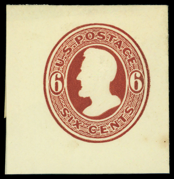 5307 og U86 imageEnvelope, 1870, Reay Issue, 6¢ dark red on amber (Scott U86), cut square (full corner), without gum as issued, Extremely Fine.