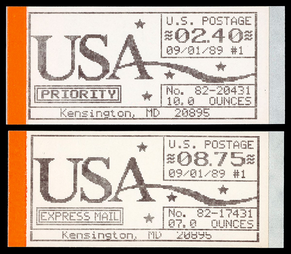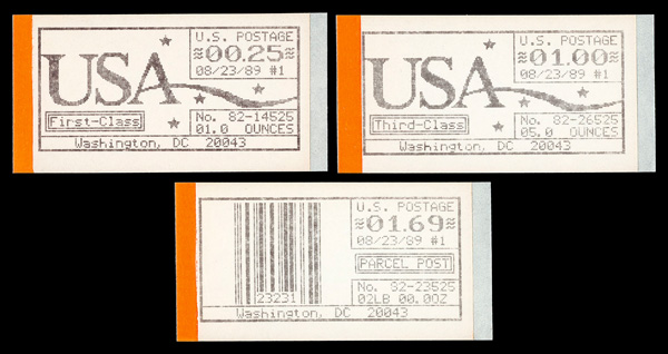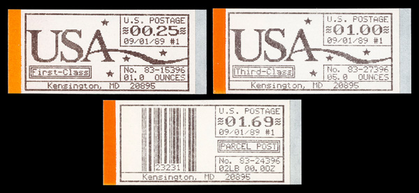 5300 nh CVP11a-CVP15a image1989, 25¢-$8.75 Computer Vended Postage, Kensington MD, machine #82, 1st Day Dated, complete (Scott CVP11a-CVP15a), set of 5, o.g., never hinged, Very Fine.
