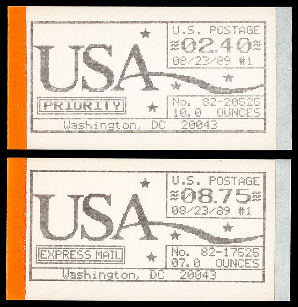5298 nh CVP1a-CVP5a image1989, 25¢-$8.75 Computer Vended Postage, Washington DC, machine #82, 1st Day Dated, complete (Scott CVP1a-CVP5a), set of 5, o.g., never hinged, Very Fine.