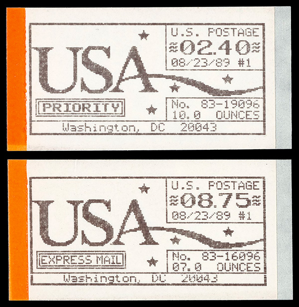 5299 nh CVP6a-CVP10a image1989, 25¢-$8.75 Computer Vended Postage, Washington DC, machine #83, 1st Day Dated, complete (Scott CVP6a-CVP10a), set of 5, o.g., never hinged, Very Fine.