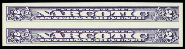 5323 nh RJA80a imageNarcotic Tax, 1963, 2¢ violet, imperf (Scott RJA80a), vertical pair, o.g., never hinged, Extremely Fine.