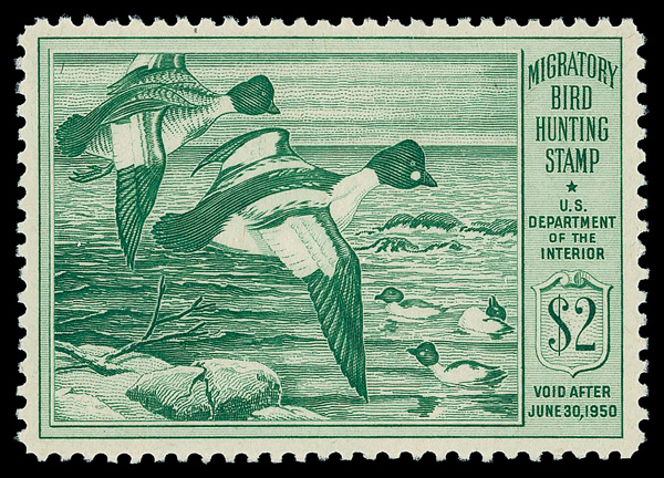 5334 nh RW16 imageFederal Duck Stamp, 1949, $2 Goldeneye Ducks (Scott RW16), o.g., never hinged, Very Fine to Extremely Fine.