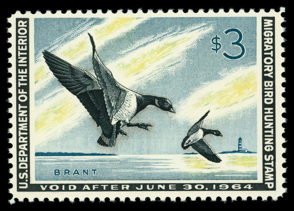 5348 nh RW30 imageFederal Duck Stamp, 1963, $3 Brants (Scott RW30), o.g., never hinged, Very Fine.