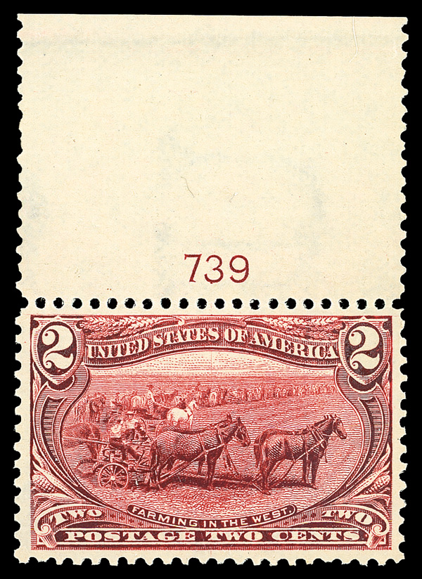 7035 og 290 image1898, 10¢ Trans-Miss. (Scott 290), o.g., barest trace of hinge, wondrously fresh with deep color and clear detail, all with superior centering, Very Fine to Extremely Fine.