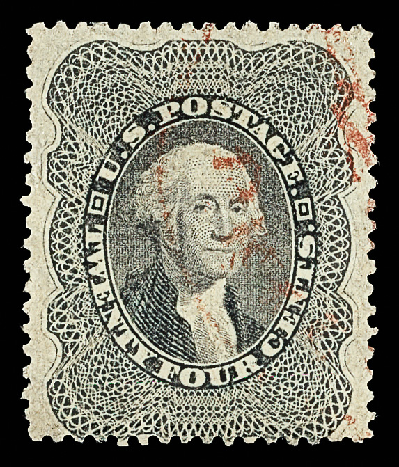 7005 O 37 image1860, 24¢ gray lilac (Scott 37), sound and fresh with crystal-clear detail and a lightly struck red cancel, Fine to Very Fine, with 2024 P.S.E. certificate.