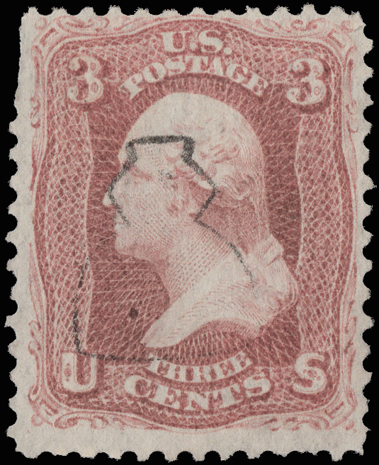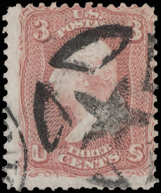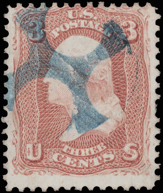 blue on a F-VF 3¢ rose (65); unusual. (Image)