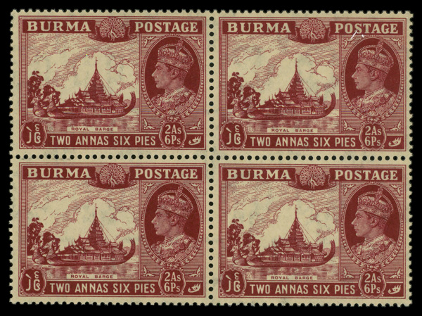 7461 nhbl 25 image1938-40 2a6p rose lake Royal Barge (Scott 25), block of 4, o.g., never hinged, Fine to Very Fine.