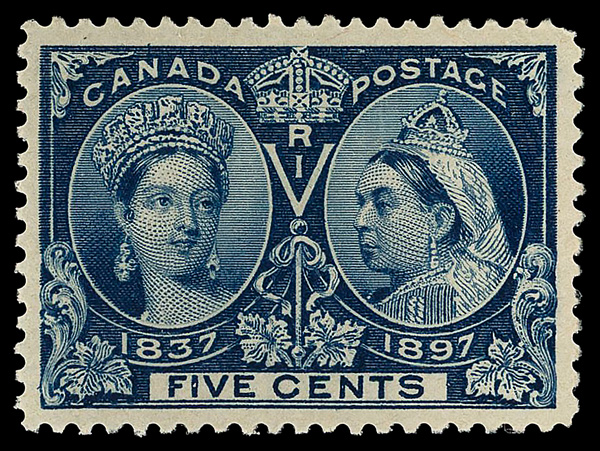 7501 nh 54 image1897, Queen Victoria Jubilee, 5¢ deep blue (Scott 54), precisely centered within large margins, prooflike color, Extremely Fine and choice, o.g., never hinged.