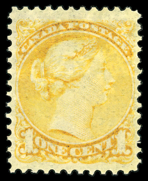 7496 og 35 image1870, Small Queen, 1¢ yellow (Scott 35), nicely centered single with bold color, full o.g., never hinged, Very Fine and choice.