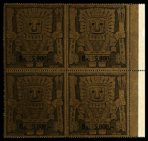 7605 nhbl 450 image1960, 5000b on 5b gray on gold Gate of the Sun (Scott 450), block of 4, o.g., never hinged, Very Fine to Extremely Fine.