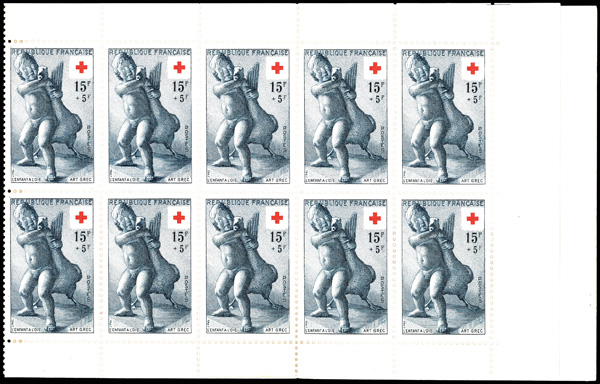 7604 nh 288 image1962, France 45fr, 'E A' & bar overprint, 'E A' omitted (Scott 288), top margin vertical pair, o.g., never hinged, Extremely Fine. (Image) Suggested Bid $27