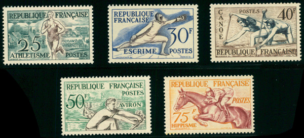 7629 nh 701-705 image1953 Sports 25fr-75fr without 20fr (Scott 701-705), o.g., never hinged, Very Fine to Extremely Fine.