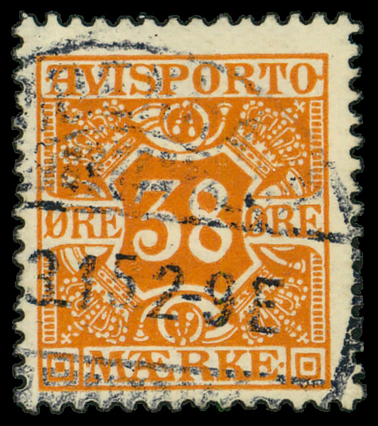 7623 O P18 imageNewspaper Stamp, 1914, 38øre orange (Scott P18), single, Fine to Very Fine.