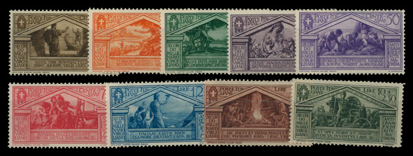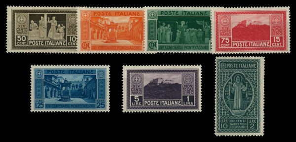 7737 nh 232-238 image1929, 14th century of the founding of the Abbey of Monte Cassino complete (Scott 232-238), complete set of singles, o.g., never hinged, Fine to Very Fine.