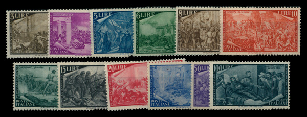 7753 og 495-506 image1948, Centenary of the Risorgimento that lead to Italian unification complete (Scott 495-506), complete set of singles, o.g., hinged, Fine to Very Fine, Does not include Scott E26.