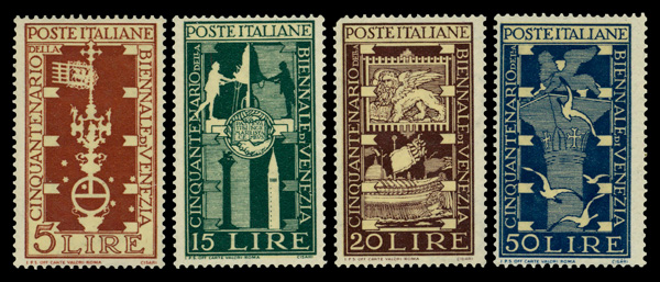 7754 nh 510-513 image1949, 50th anniversary of the Biennial Art Exhibition of Vencie complete (Scott 510-513), complete set of singles, o.g., never hinged, Fine to Very Fine.