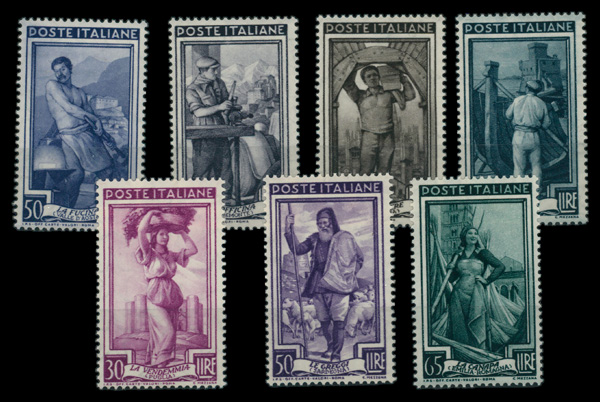 7756 nh 661-662 image1954, 100l brown & 200l deep blue Italia (Scott 661-662), complete set of singles, o.g., never hinged, Fine to Very Fine.