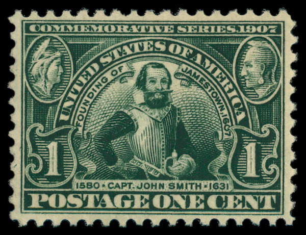 7046 nh 328 image1907, 1¢ Jamestown (Scott 328), o.g., never hinged, Very Fine to Extremely Fine.