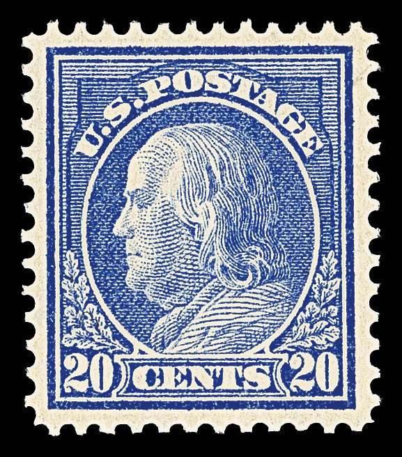 7067 og 419 image1914, 20¢ ultramarine, S.L. watermark, perf. 12 (Scott 419), o.g., hinged, Post Office fresh with strong color and clean detail, sound with lovely centering, Very Fine to Extremely Fine.