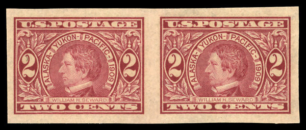 7055 nh 371 image1909, 2¢ Alaska-Yukon, imperf. (Scott 371), pair, o.g., never hinged, Extremely Fine.