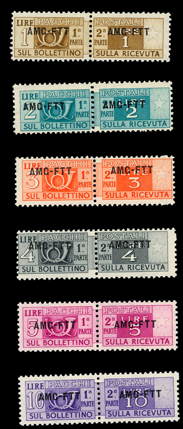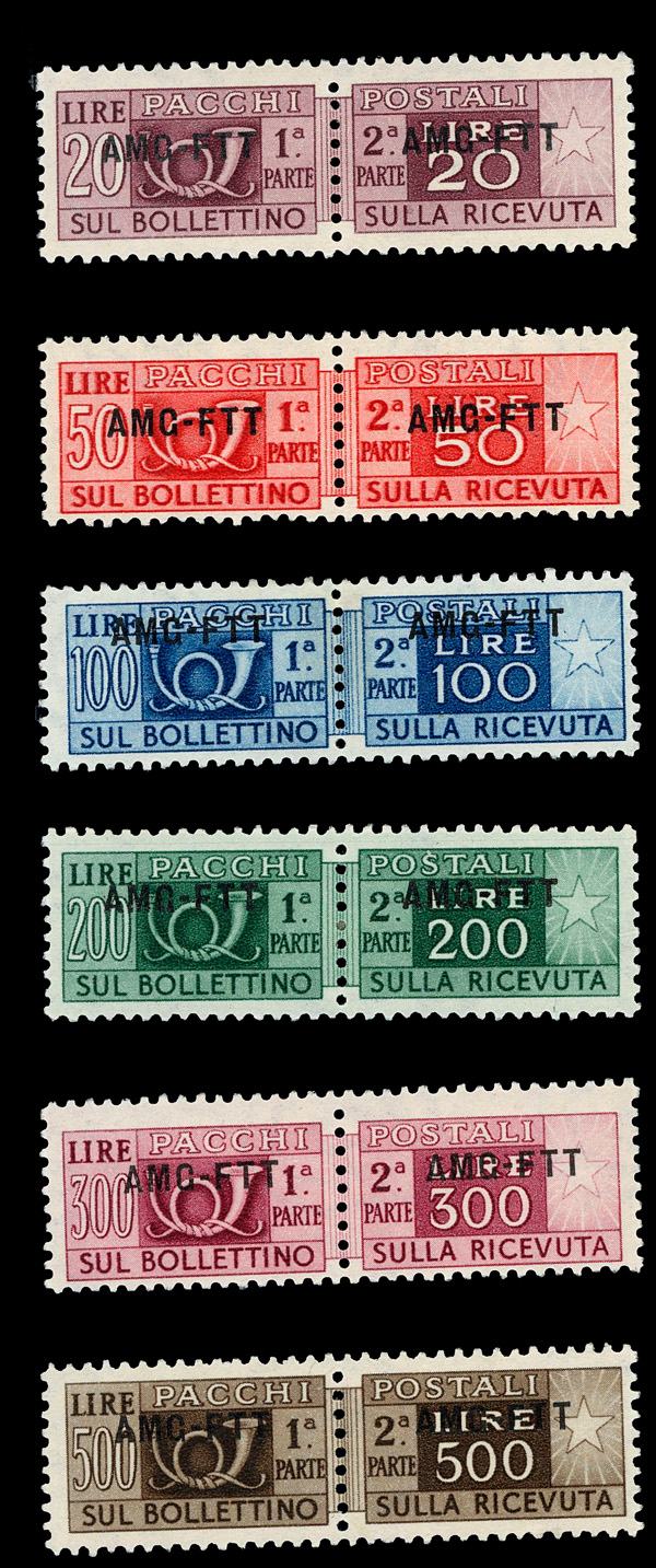 7796 og Q13-Q25 image1949-52, Italy 1l-500l, 'AMG-FTT' overprint (Scott Q13-Q25), o.g., hinged, Fine to Very Fine.