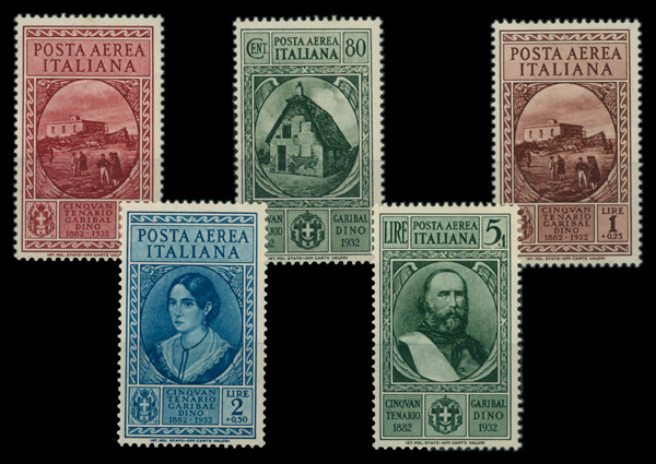 7763 nh C35-C39 image1932, 50th anniversary of the death of Giuseppe Garibaldi complete (Scott C35-C39), complete set of single, o.g., never hinged, Fine to Very Fine.