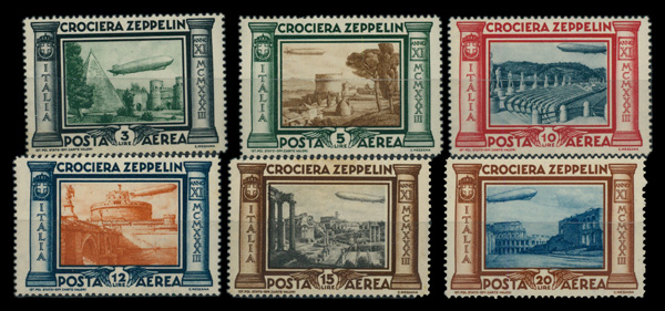 7764 nh C42-C47 image1933, Zeppelin over Italian Landmarks complete (Scott C42-C47), complete set of singles, o.g., never hinged, Fine to Very Fine.