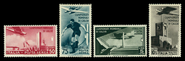 7766 og C62-C65 image1934, 2nd World Soccer Champianship complete (Scott C62-C65), complete set of singles, o.g., hinged, Fine to Very Fine.