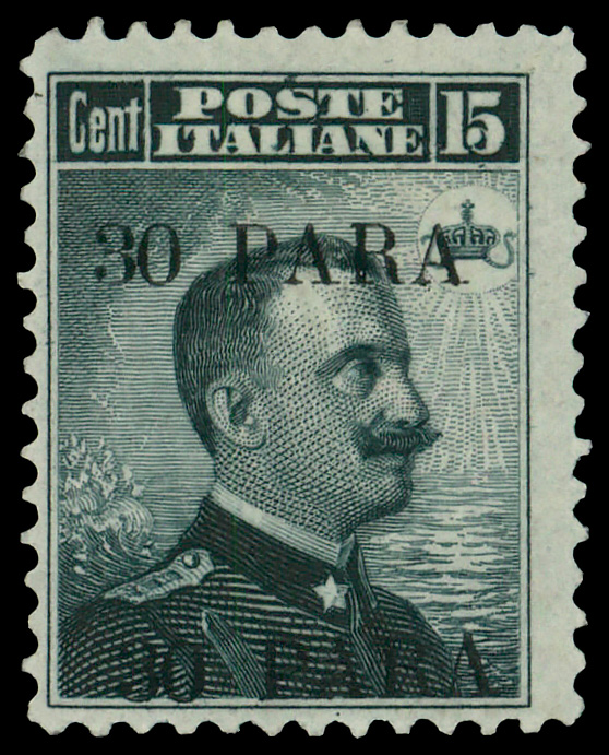 7779 og 15a image1908, 15c slate Victor Emmanuel III with double surcharge (Scott 15a), single, o.g., hinged, Fine to Very Fine.