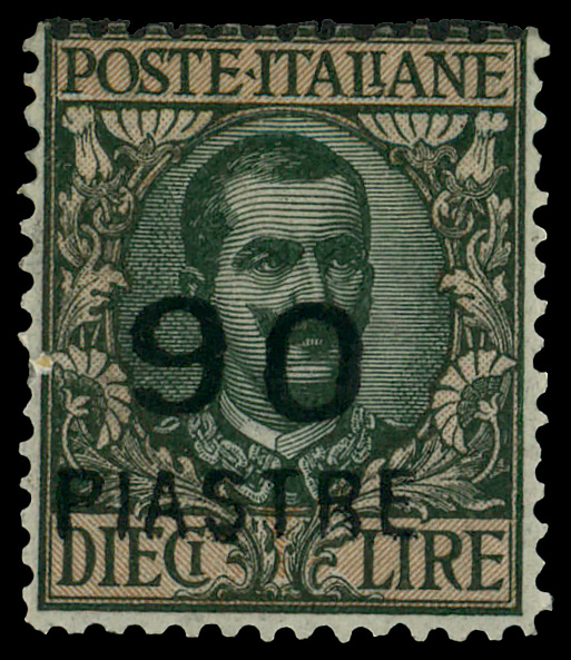 7781 og 55 image1922, 10l gray green & red Victor Emmanuel large 90pi surcharge (Scott 55), single, o.g., hinged, Fine to Very Fine.