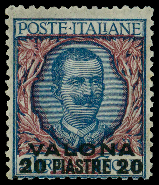 7782 nh 7 image1909-11, 5l blue & red Victor Emmanuel 20pi surcharge (Scott 7), single, o.g., never hinged, Fine to Very Fine.