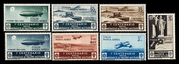 7768 O C66-C72 image1934, Centenary of the Institution of the Military Medal of Valor complete (Scott C66-C72), complete set of single, Very Fine.