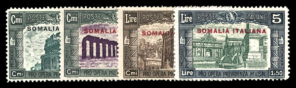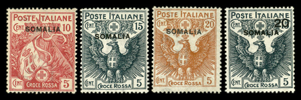 7933 og 100-103 image1928-1930, Victor Emmanuel III overprinted (Scott 100-103), complete set of singles, o.g., hinged, Fine to Very Fine.